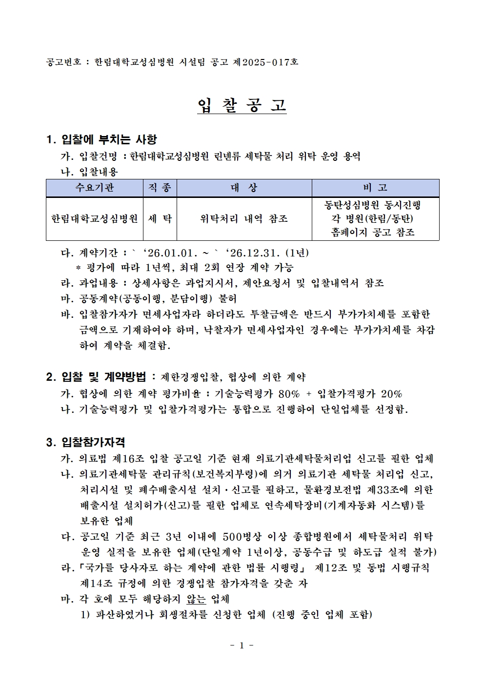 [ÀÔÂû°ø°í] ÇѸ²´ëÇб³¼º½Éº´¿ø ¸°³Ù·ù ¼¼Å¹¹° ó¸® À§Å¹ ¿î¿µ ¿ë¿ª