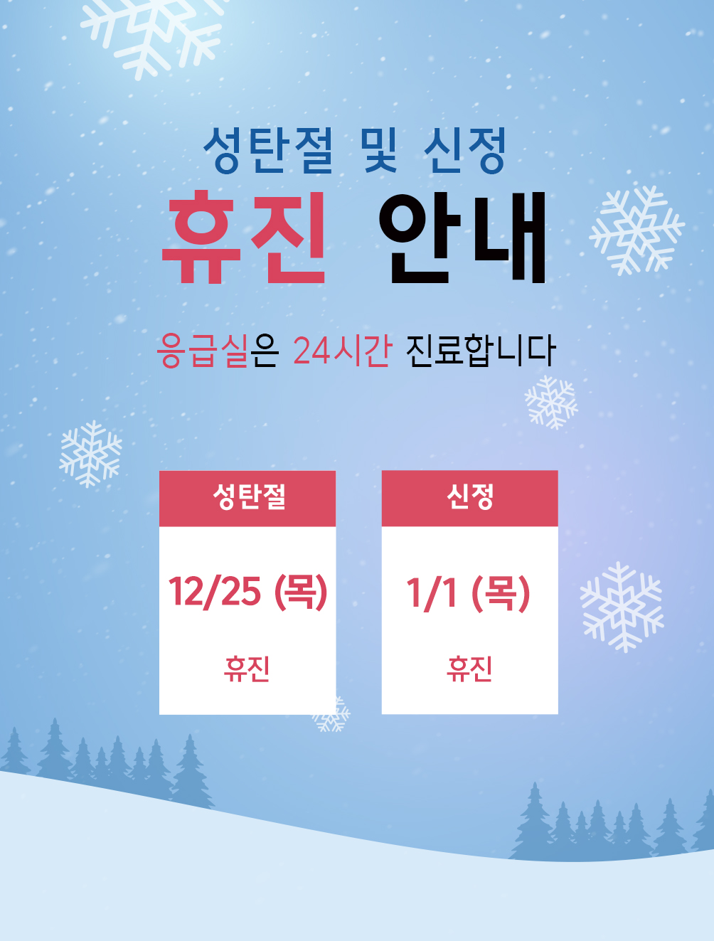 [°øÁö] 12/25(¸ñ) ¼ºÅºÀý, 1/1(¸ñ) ½ÅÁ¤ ÈÞÁø ¾È³» / ÀÀ±Þ½ÇÀº 24½Ã°£ Áø·áÇÕ´Ï´Ù.